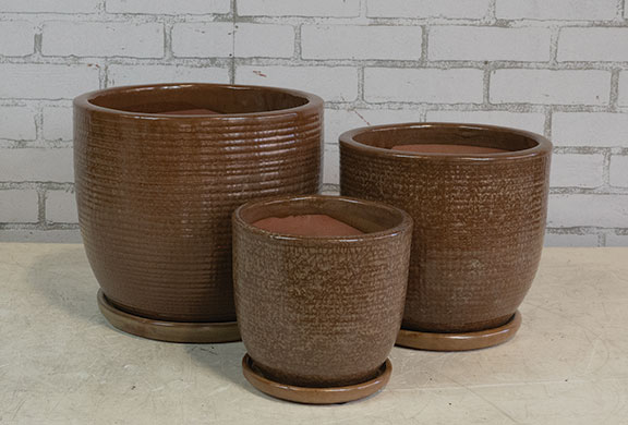 | GM025BZ | Cleo Pot w/ Attached Saucer – Bronze – S/3 – 12″D x 11″H, 10″D x 9″H, 8″D x 7″H – 025734497537, 025734497544, 025734497551 |
