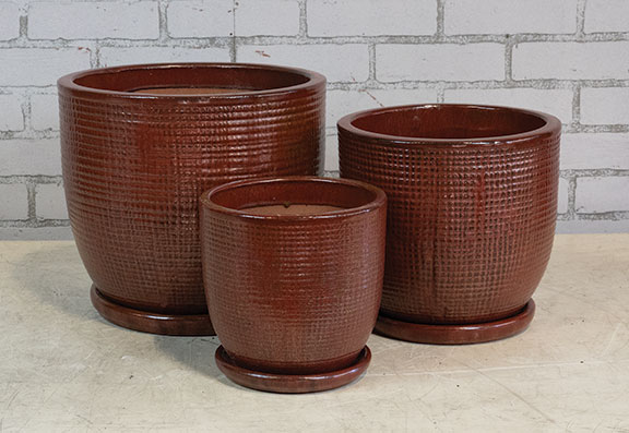 | GM025CP | Cleo Pot w/ Attached Saucer – Copper – S/3 – 12″D x 11″H, 10″D x 9″H, 8″D x 7″H – 025734497537, 025734497544, 025734497551 |