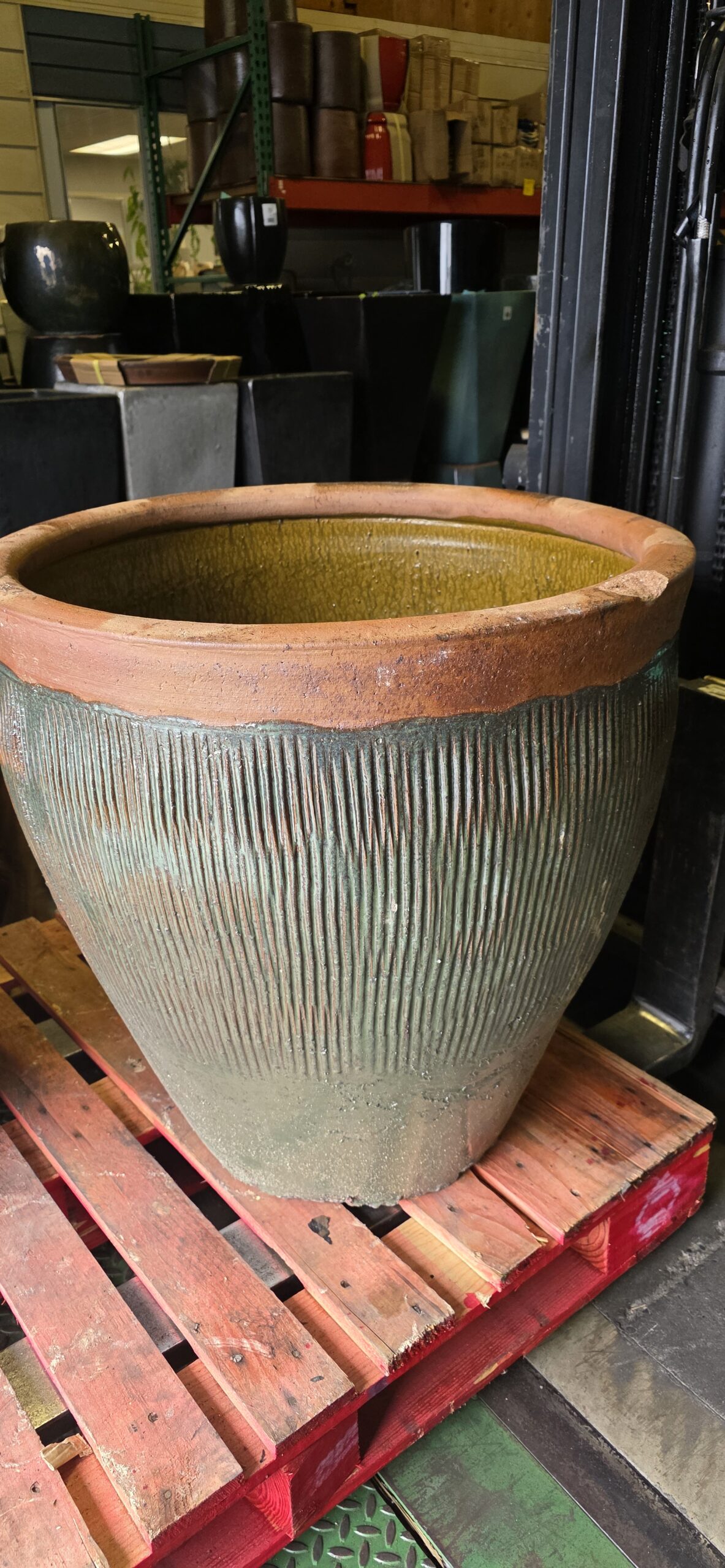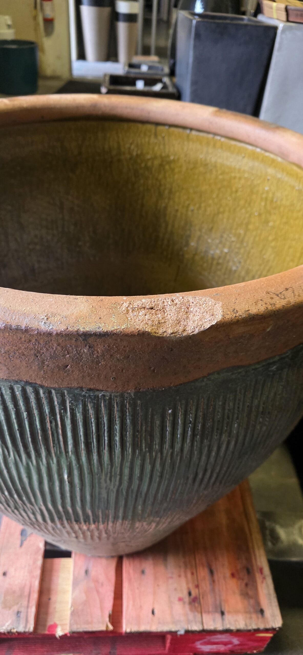 Rustic Tall Hollywood Planter – Green – Chip on Rim
